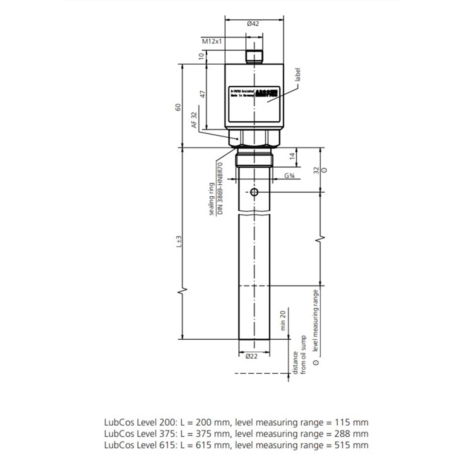 Seviye Sensörü, 50 bar, 4-20mA, 375mm, G3/4