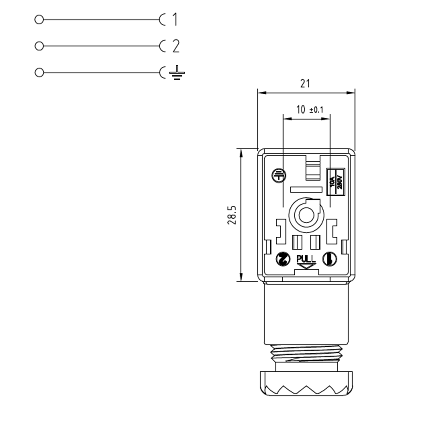 Soket, dikdörtgen, 21x28,5x30mm, ayak aralığı 11mm, 2+1 kutup, 250V AC/ 300VDC