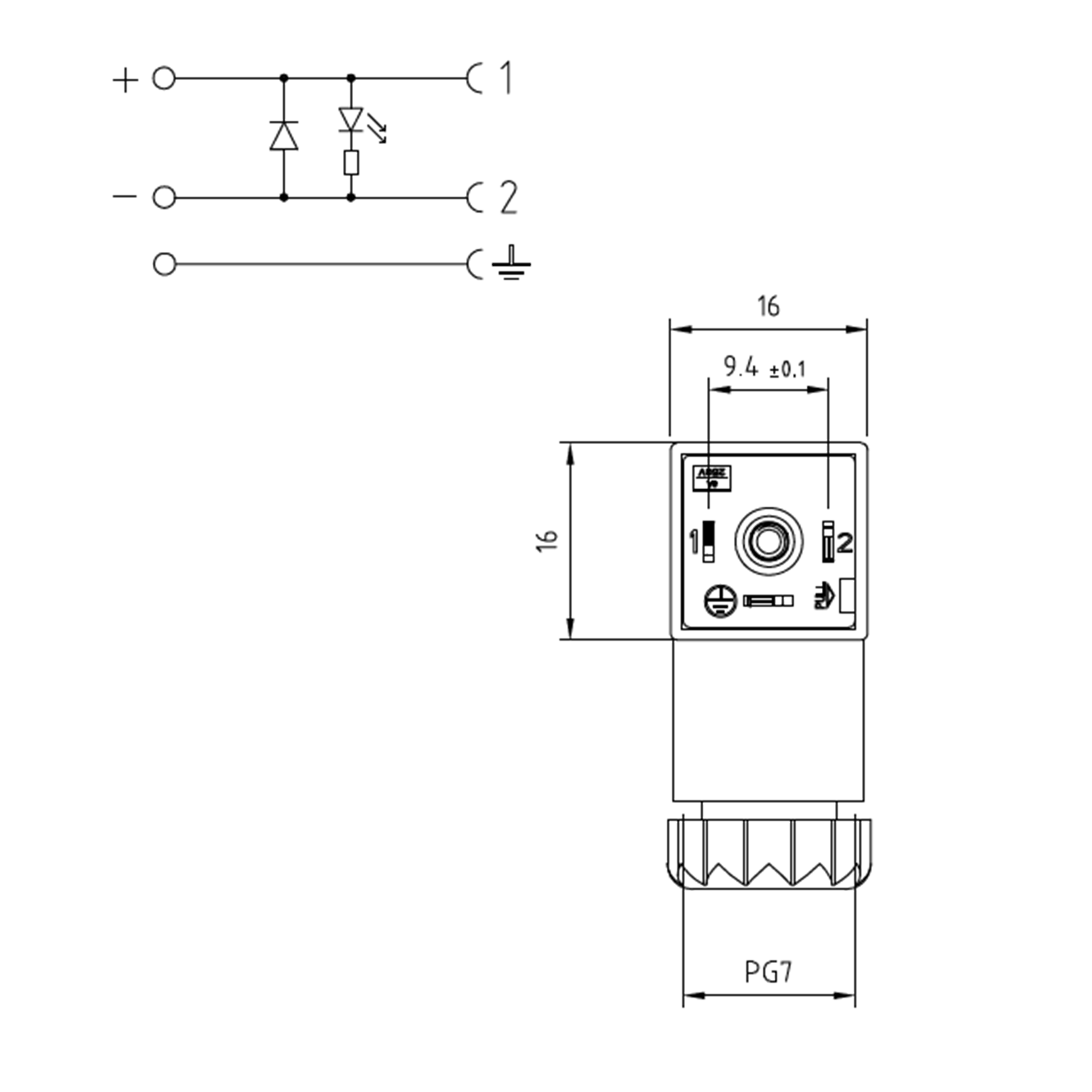 Soket, ledli, kare, 16x16x26mm, ayak aralığı 9,4mm, 2+1 kutup, akım korumalı, 24V AC/DC