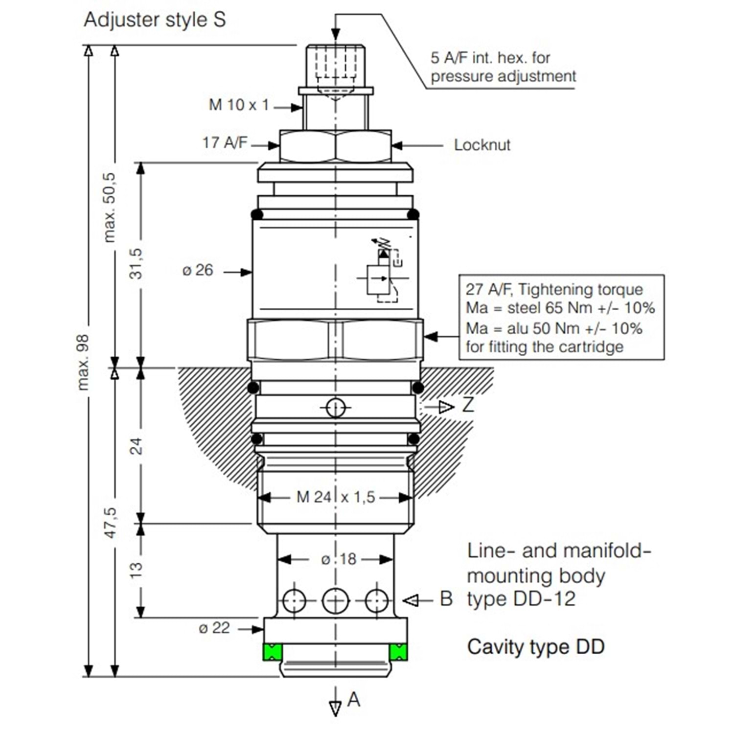 Basınç düşürücü, pilot uyarılı, 60 lt, 10-250 bar, C10-3