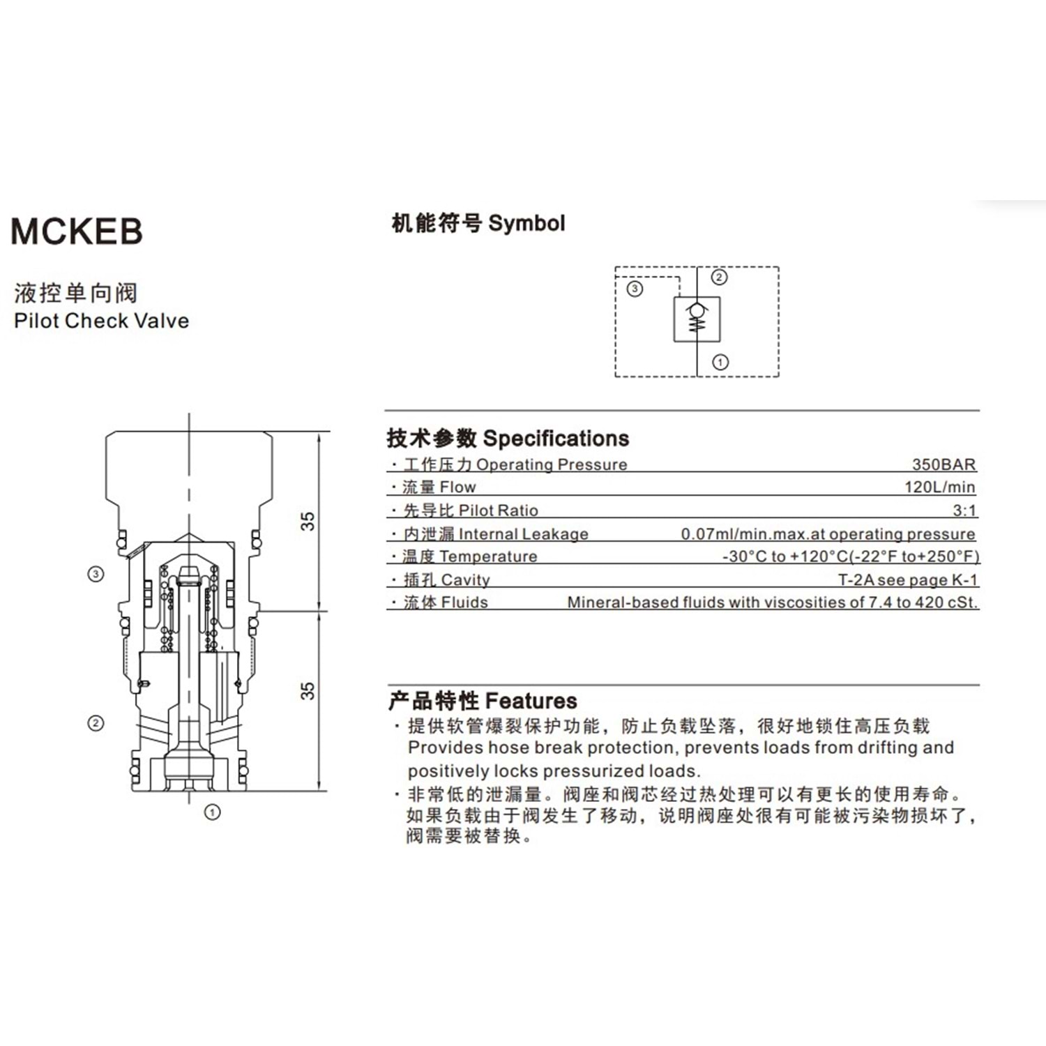 Çekvalf, pilotla açılan, sızıntı hatlı, 60 lt, 350 bar (2 bar aç. bas.) 3:1, T-21A