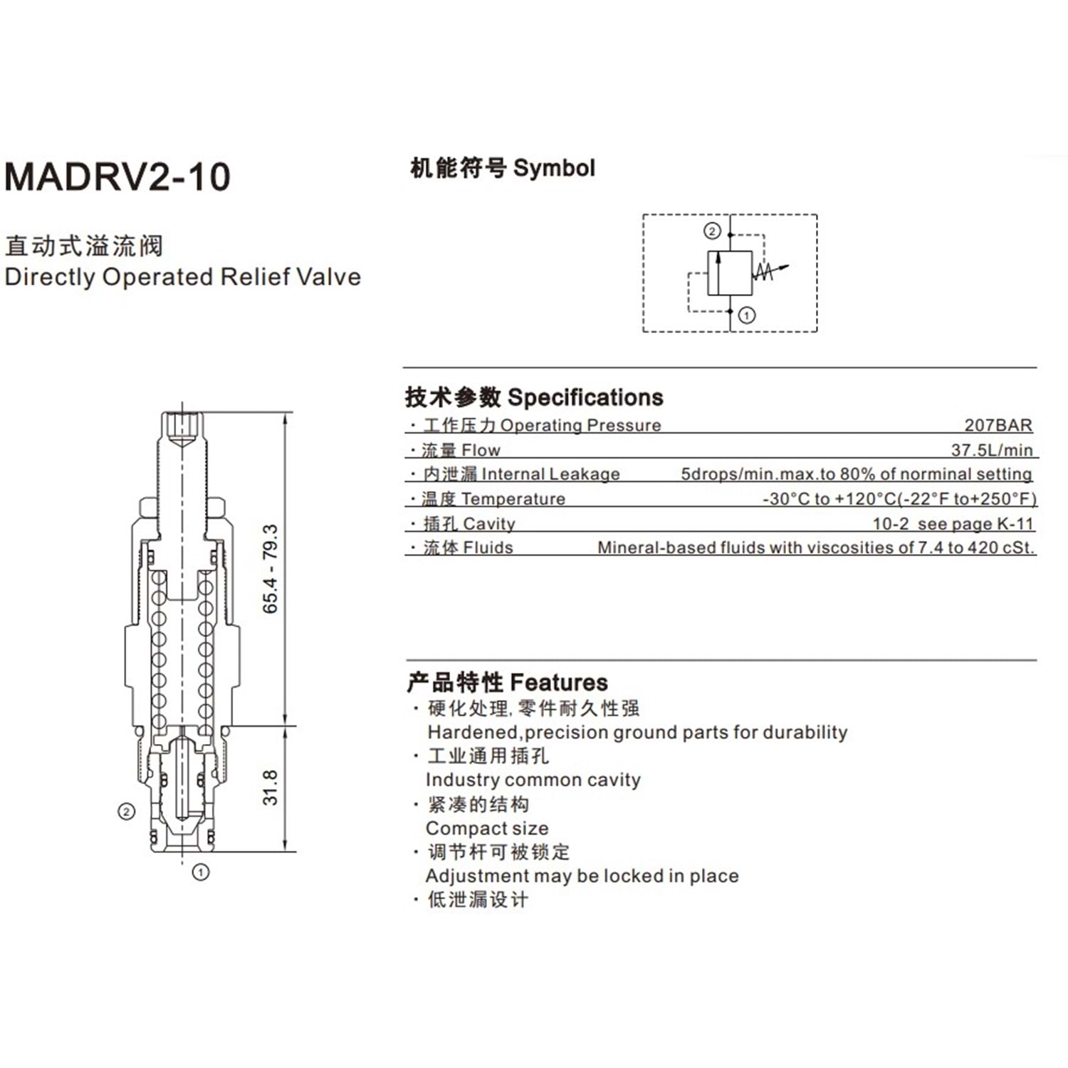 Emniyet valfi, direkt uyarılı, 100 lt, 5-210 bar, C10-2