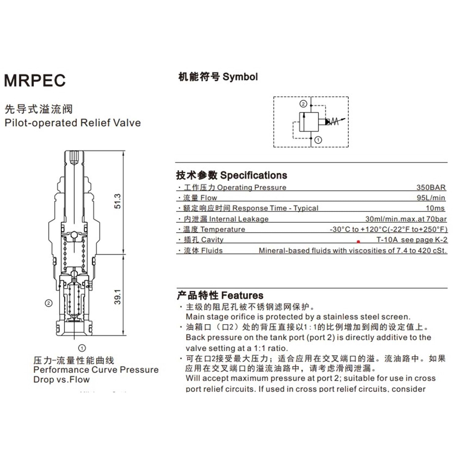 Emniyet valfi, pilot uyarılı, 227,4 lt, 10,5-315 bar, T-3A