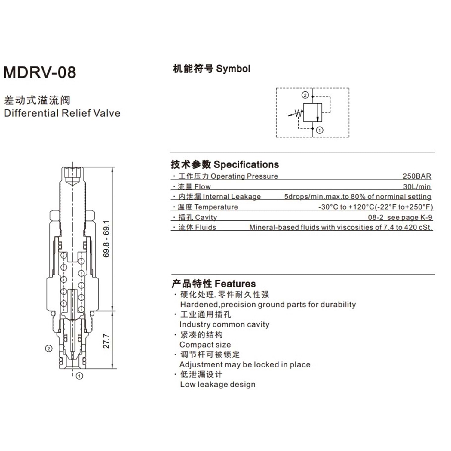 Emniyet valfi, direkt etkili, dif.area, 38 lt,100-350 bar ,C08-2