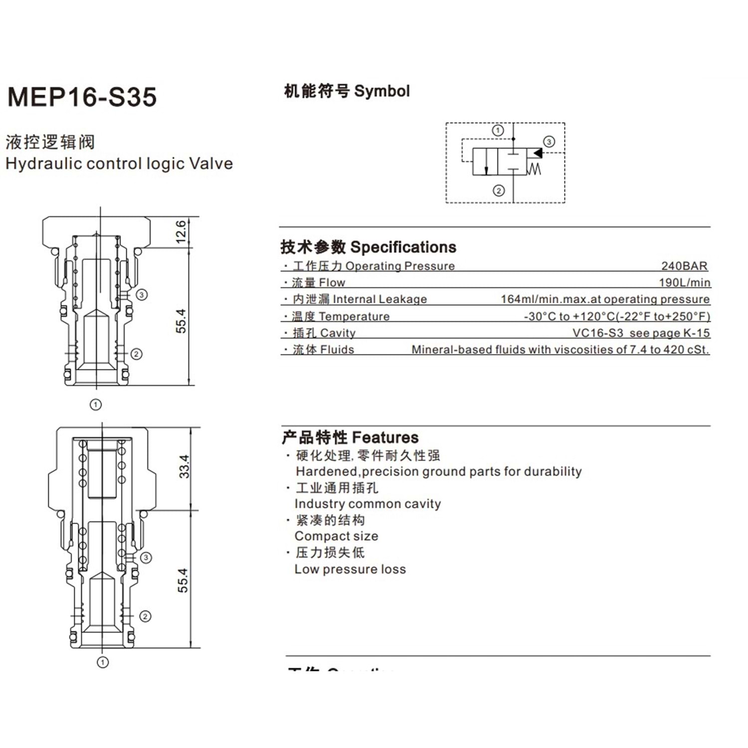 Lojik element, debi ve basınç kontrolü, hidrolik uyarılı, 150 lt, 350 bar, C12-3S