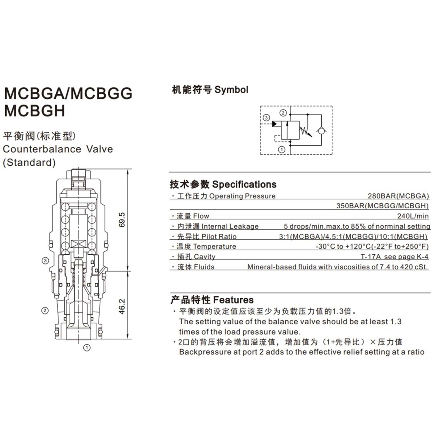 Yük tutma (Karşı denge), 120 lt, 140-350 bar, (1,7 bar kır.) 4,5:1, T-2A